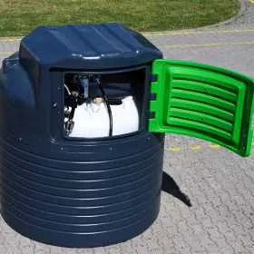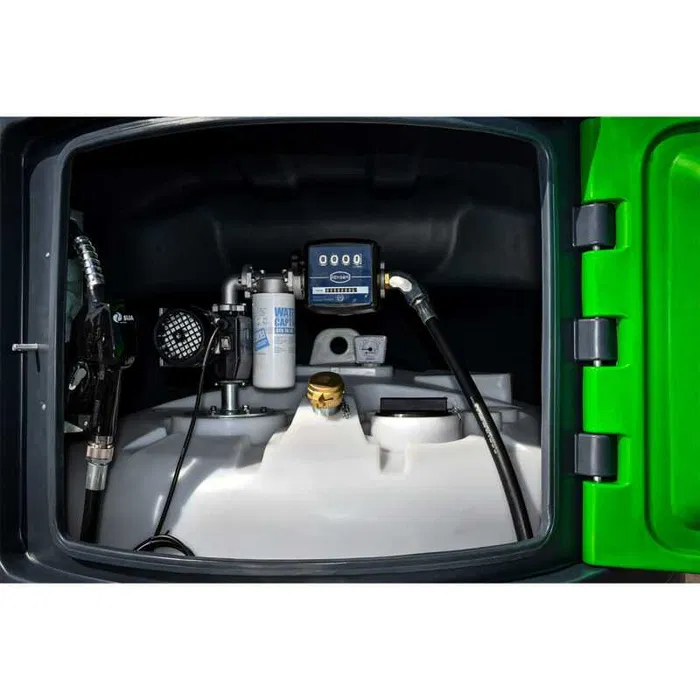 Fortis EcoTank 2500 l to solidny, dwupłaszczowy zbiornik na olej napędowy, wykonany z certyfikowanego polietylenu odpornego na promieniowanie UV i warunki atmosferyczne. Wyposażony w wydajną pompę PIUSI Panther 56 l/min, licznik (elektroniczny K24 lub mechaniczny RENSON), filtr z separatorem wody, automatyczny pistolet i 6‑metrowy wąż dystrybucyjny. Praktyczny mechaniczny wskaźnik poziomu, kolano obrotowe oraz dostęp przez rewizyjne drzwi zapewniają wygodę i bezpieczeństwo użytkowania