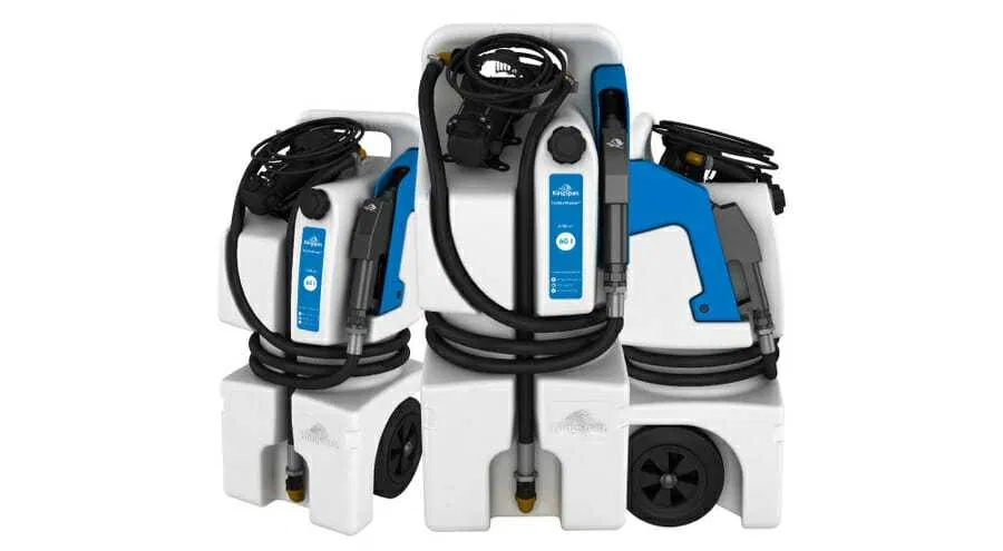 Kingspan TrolleyMaster AdBlue 60 l to kompaktowy, mobilny zbiornik idealny do tankowania środka AdBlue bezpośrednio w terenie. Wykonany z odpornego na korozję i warunki atmosferyczne polietylenu, wyposażony w solidne gumowe koła, 12 V (lub opcjonalnie 24 V) pompę i automatyczny pistolet. Posiada bezpieczny zawór kulowy, miejsce na schowanie węża i pistolet, a także wentylowany korek – wszystko to dodaje wygody i bezpieczeństwa pracy. Całość waży zaledwie ok. 18 kg, co czyni go wyjątkowo sprawnym narzędziem dla rolnictwa, firm transportowych i serwisu maszyn